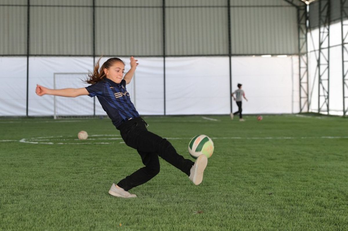 Serhatkale mezrasındaki okulda eğitim gören Gül Yıldız’ın futbol oynarken çekilen görüntüleri öğretmenleri tarafından sosyal medyada paylaşıldı.