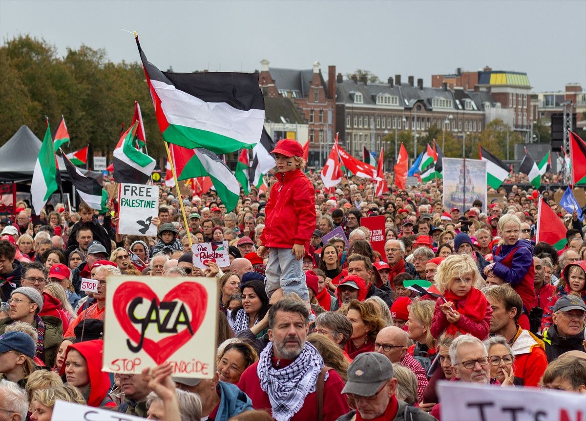 Hollanda’daki bu gösteri, Filistin’e destek amaçlı düzenlenen en geniş katılımlı protesto olarak kayda geçti. Lahey kentinde yapılan diğer gösterilere de geniş kitlelerin katılımı dikkat çekmişti.